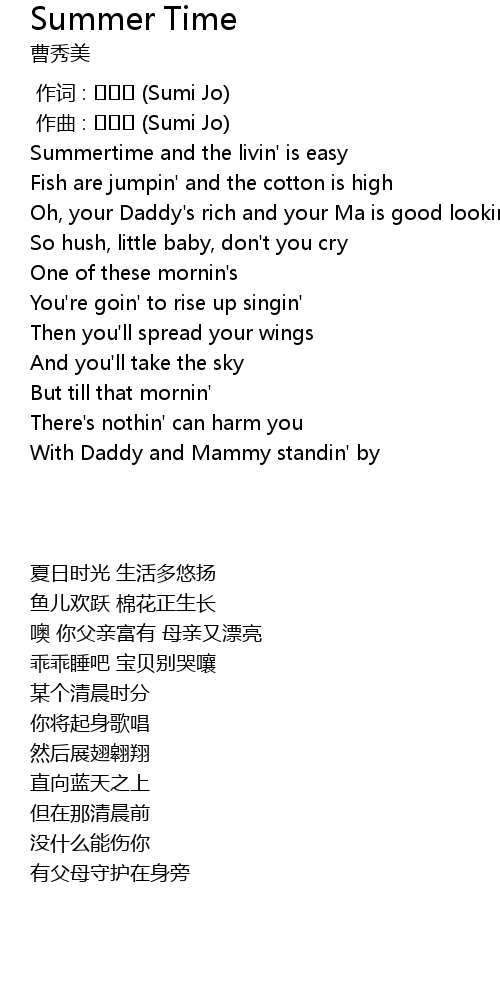 | [00:48.54] | Fish are jumpin' and the cotton is high |