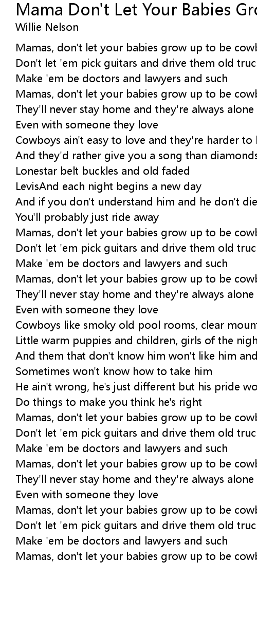 Song Mama Don't Let Your Babies Grow Up To Be Cowboys