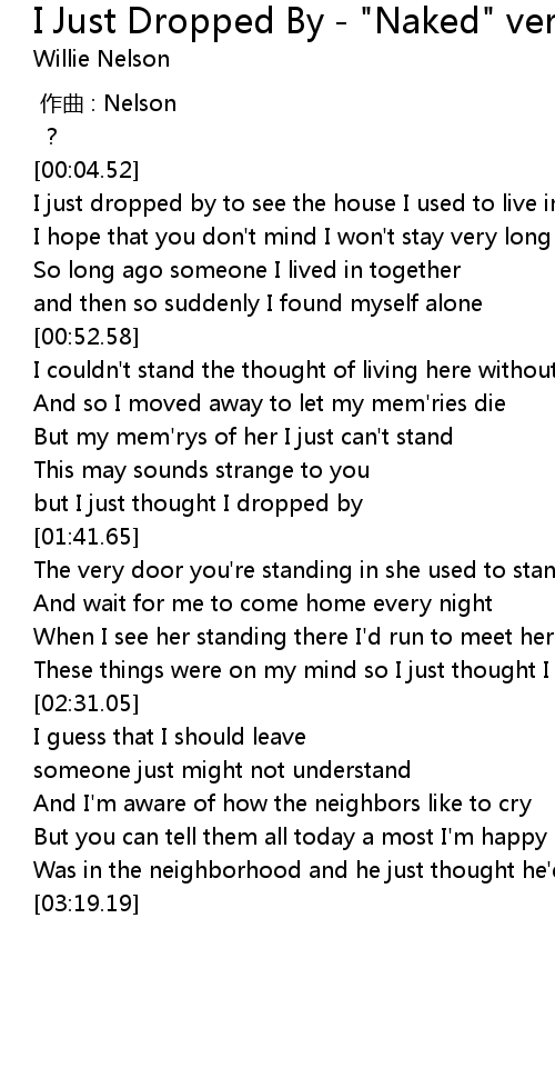 | [03:08.33] | Was in the neighborhood and he just thought he' d drop by |