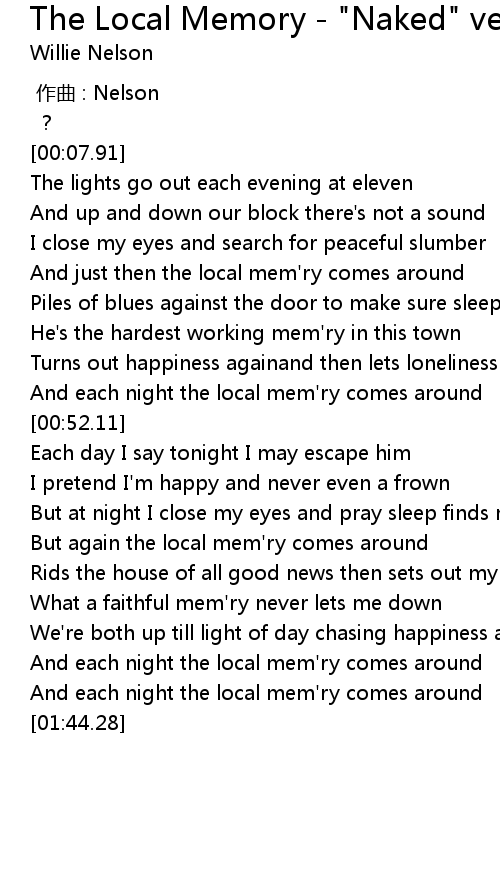 | [00:32.51] | He's the hardest working mem'ry in this town |