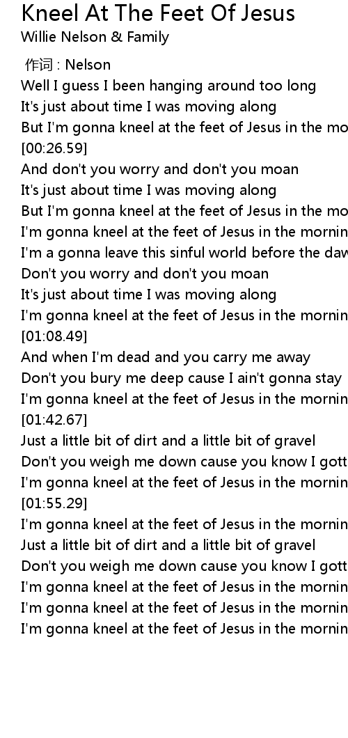 | [00:22.40] | But I'm gonna kneel at the feet of Jesus in the morning |
