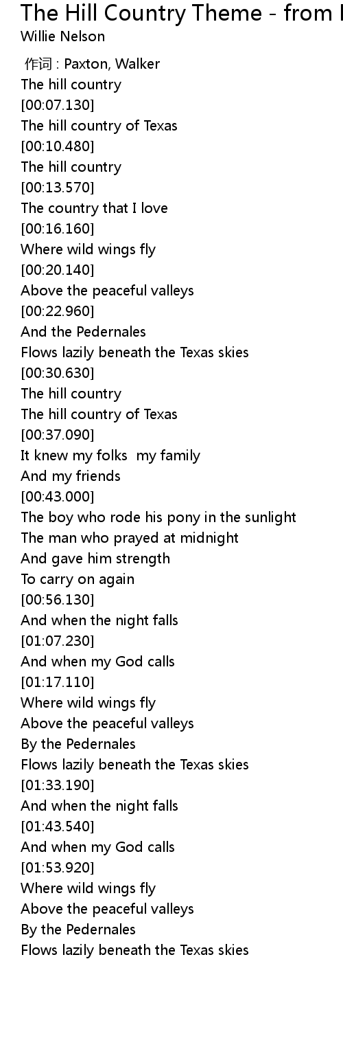 | [00:25.790] | Flows lazily beneath the Texas skies |