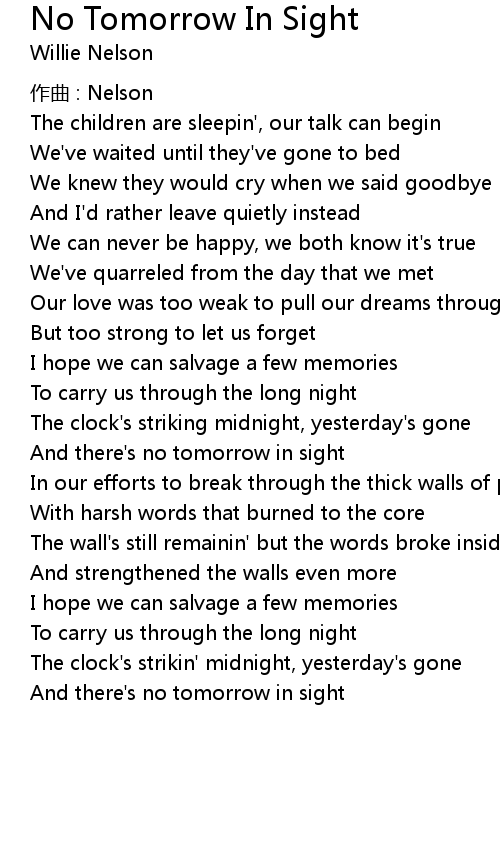 | And there' s no tomorrow in sight |