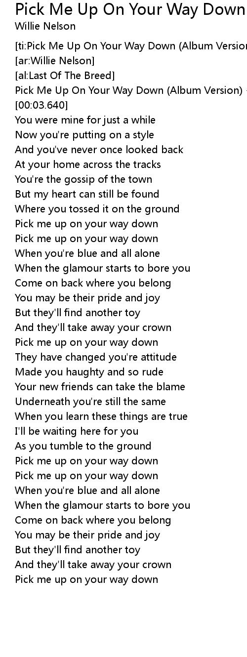 [ti:Pick Me Up On Your Way Down (Album Version)]