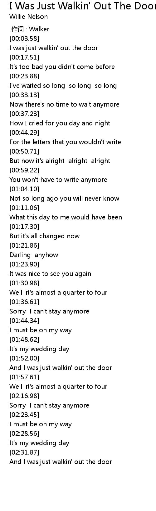 | [02:33.04] | And I was just walkin' out the door |