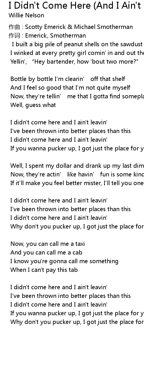 | Song | I Didn't Come Here (And I Ain't Leavin') |