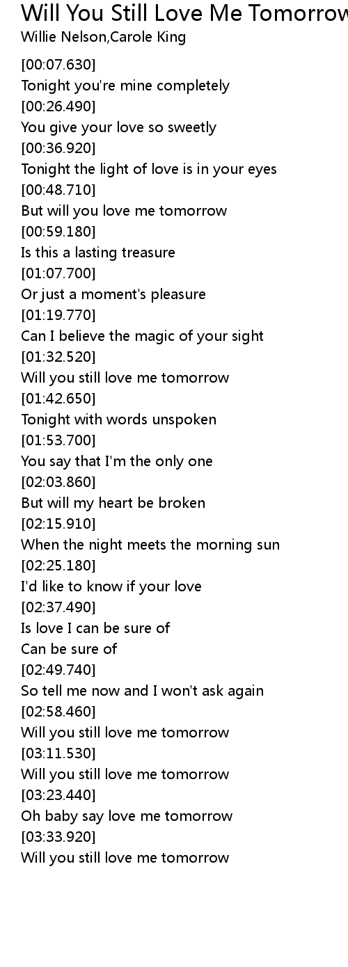 Will You Still Love Me Tomorrow - Live (2004/Wiltern Theatre, Los Angeles) Lyrics