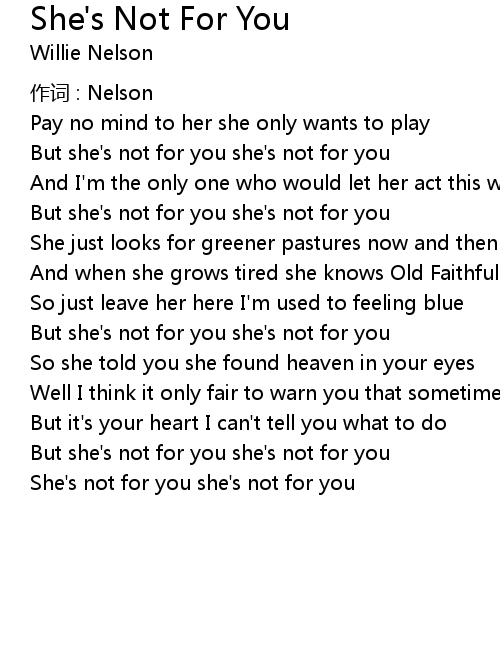 | But she' s not for you she' s not for you | |