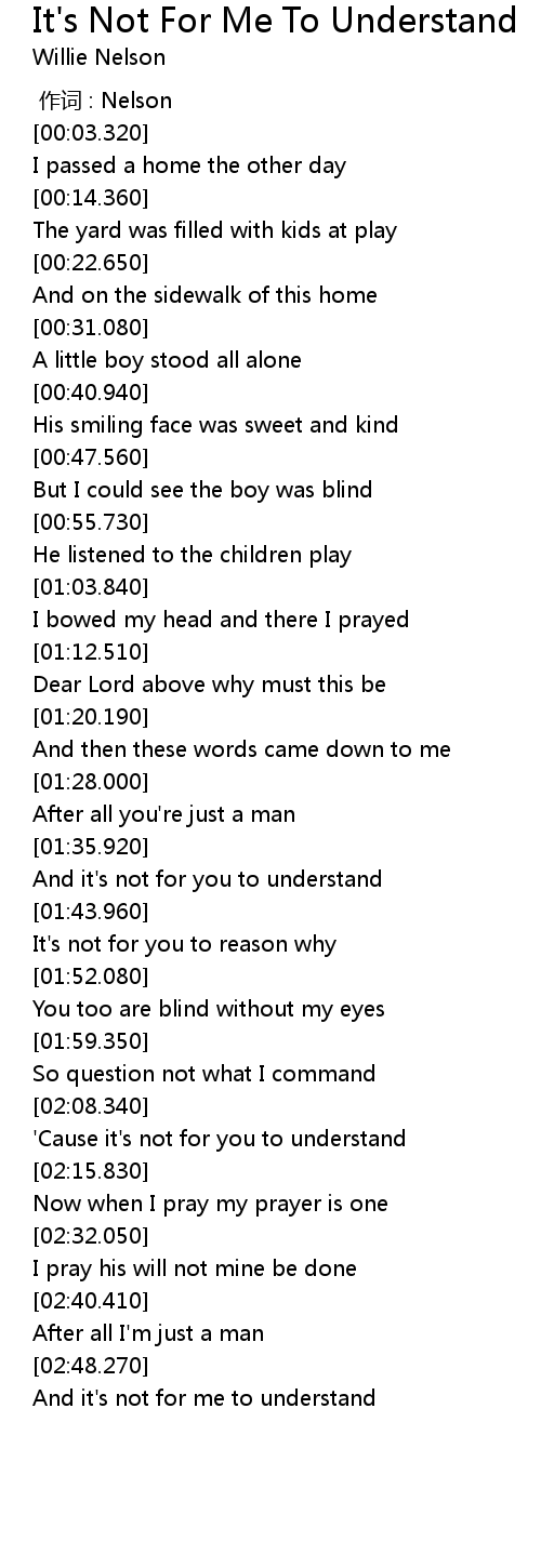 | [02:10.640] | ' Cause it' s not for you to understand |