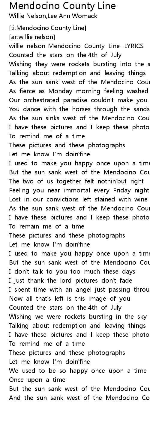 willie nelson-Mendocino County Line -LYRICS |