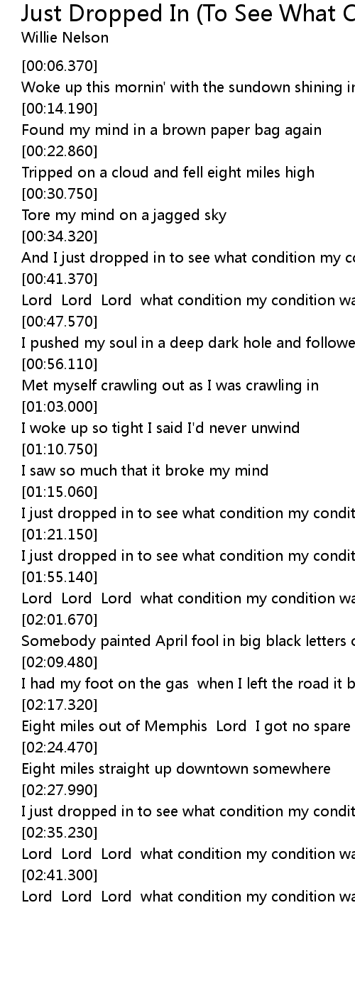 Just Dropped In (To See What Condition My Condition Was In) Lyrics