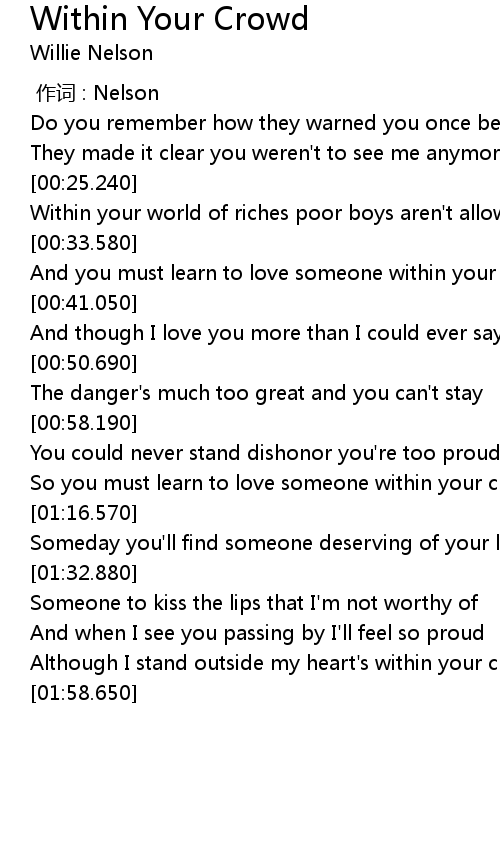 | [00:34.530] | And you must learn to love someone within your crowd |