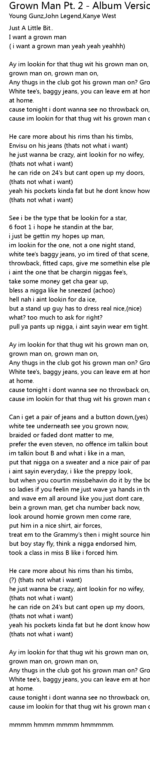 Any thugs in the club got his grown man on? Grown man on, Grown man on. |