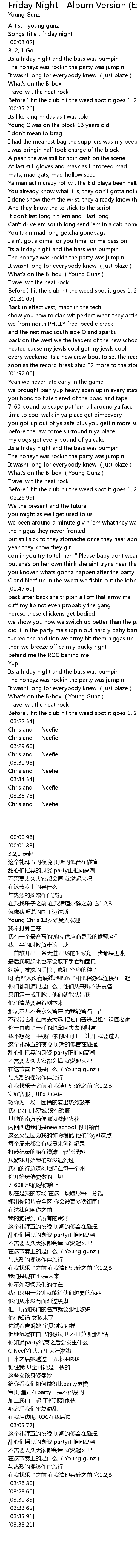| [03:06.71] | Its a friday night and the bass was bumpin |