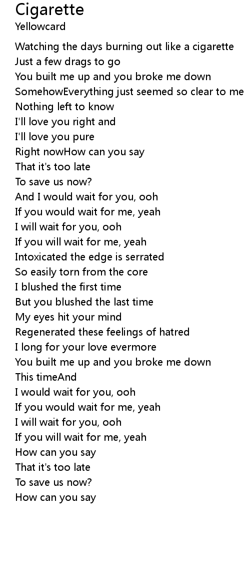 Watching the days burning out like a cigarette |