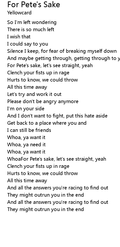 For Pete's Sake Lyrics