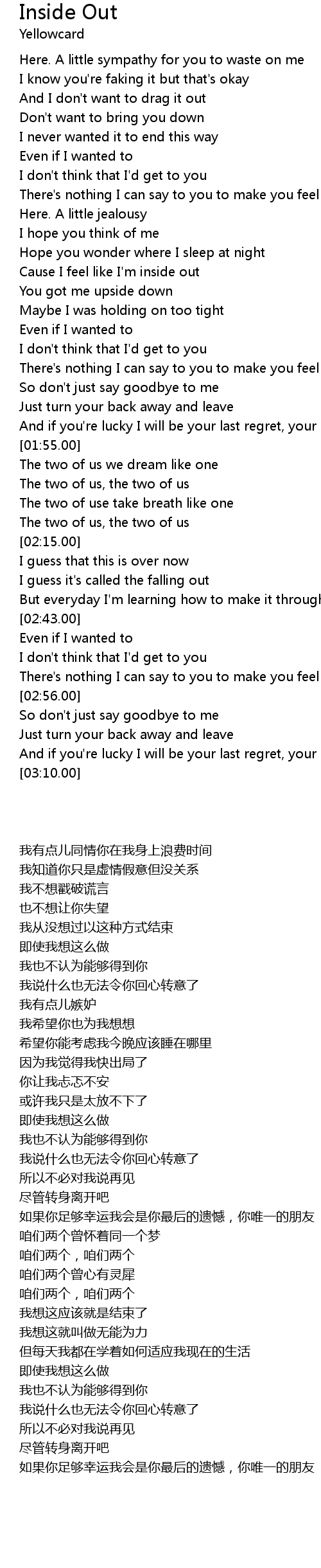 Cause I feel like I'm inside out |