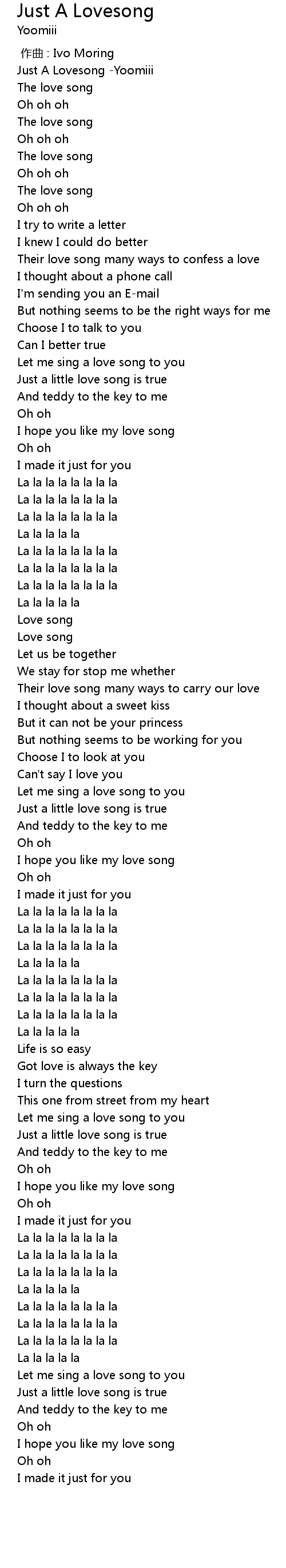 | [00:00.323] | Just A Lovesong -Yoomiii |