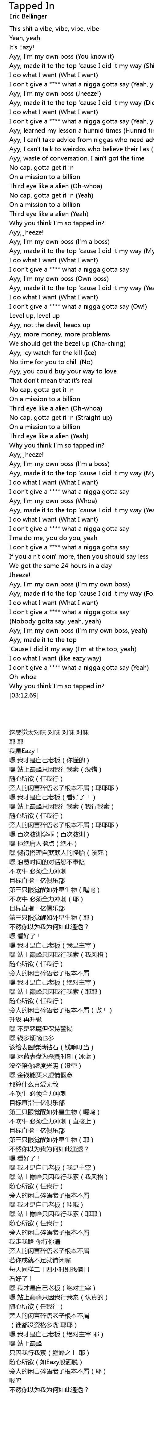 Why you think I'm so tapped in? |