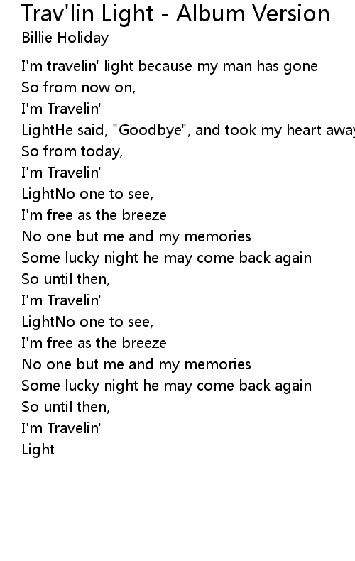 | Song | Trav'lin Light - Album Version |