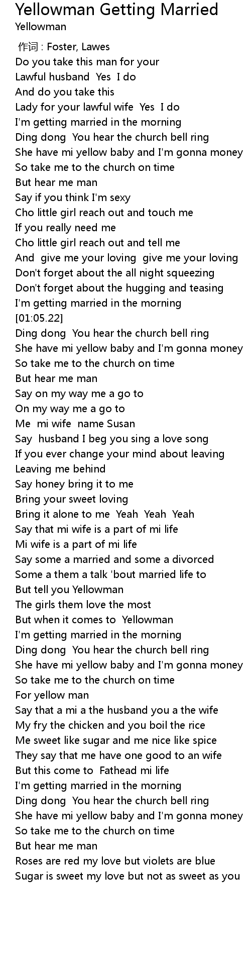 | [02:42.91] | Say that a mi a the husband you a the wife |