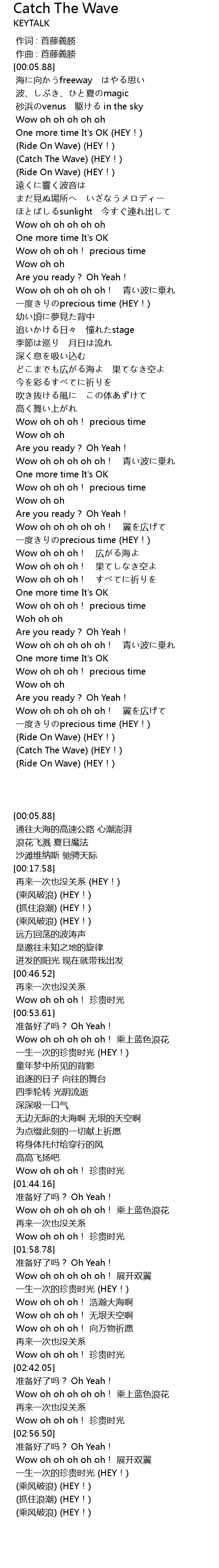 | [03:11.81] | (Catch The Wave) (HEY!) |