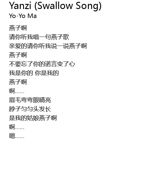 | [00:19.47] | qǐng nǐ tīng wǒ chàng yī jù yàn zi gē |