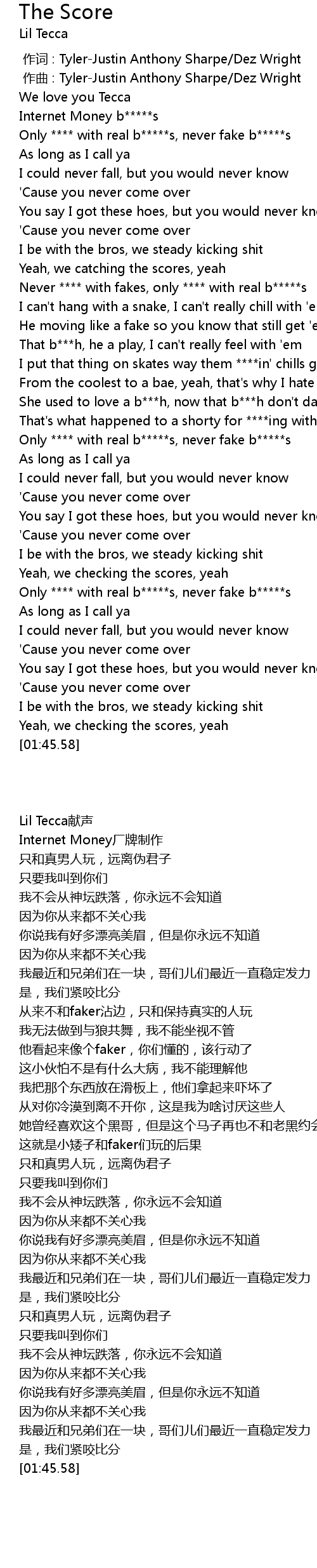 | [00:39.26] | Yeah, we catching the scores, yeah |