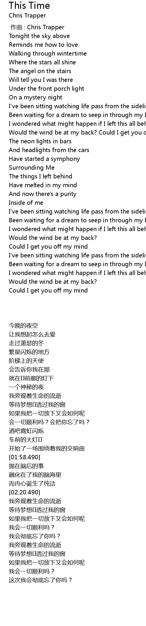 | [00:00.000] | zuo qu : Chris Trapper |