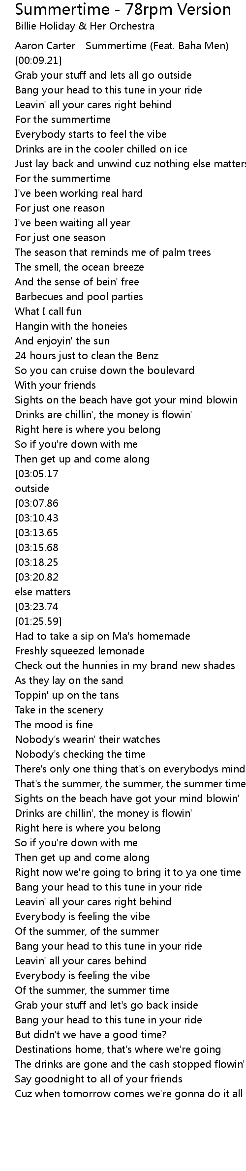 [00:00.00] Aaron Carter - Summertime (Feat. Baha Men)
