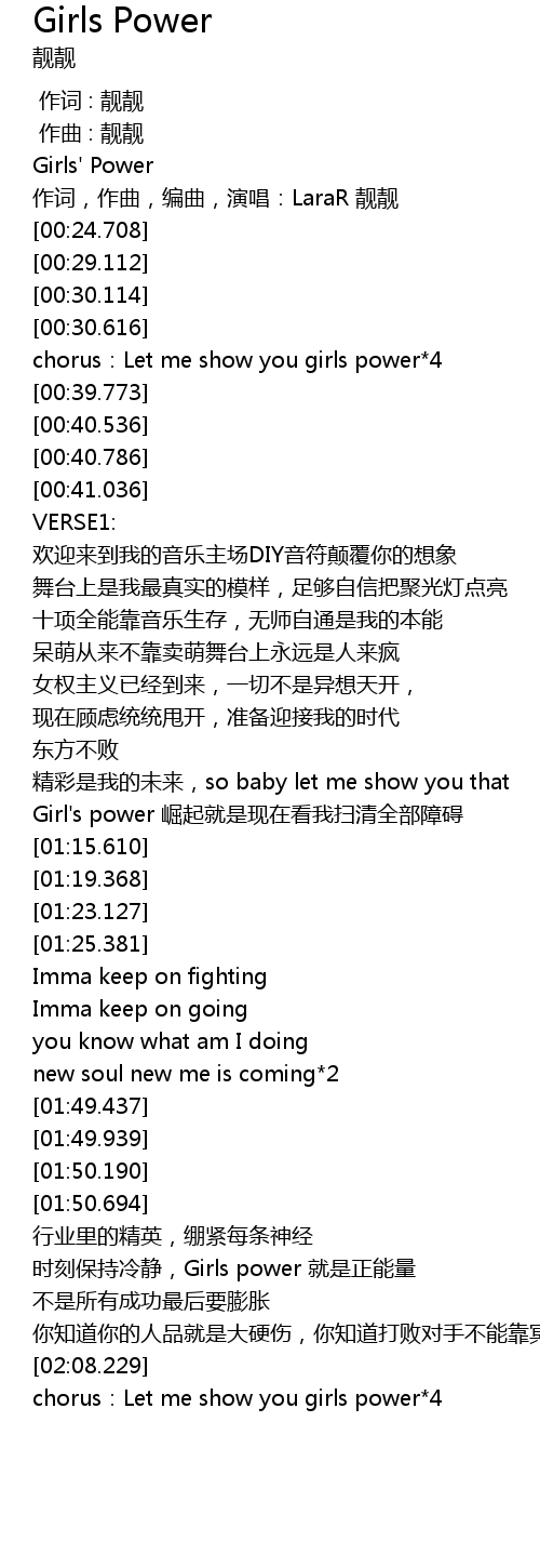 | [02:08.480] | chorus:Let me show you girls power*4 |