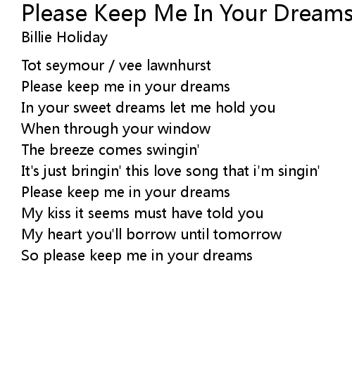 | Please keep me in your dreams | |