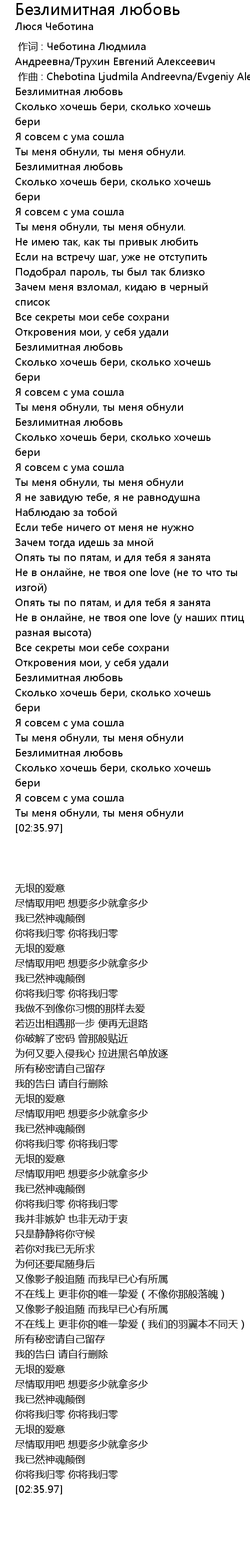 [02:21.99] Безлимитная любовь