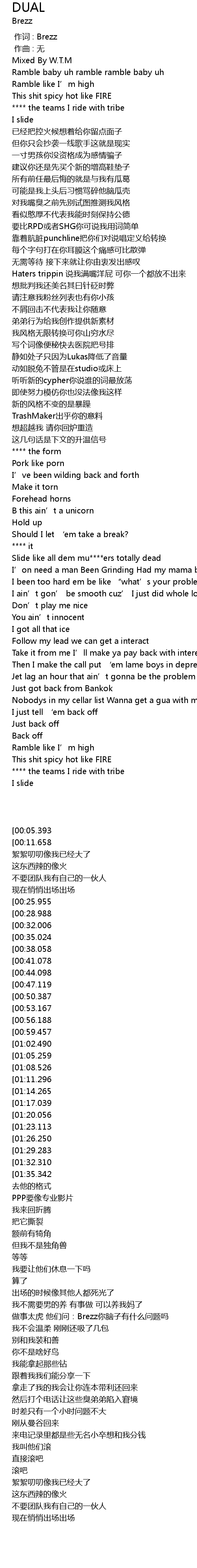 | [01:55.329] | I been too hard em be like " what' s your problem Brezz?" |