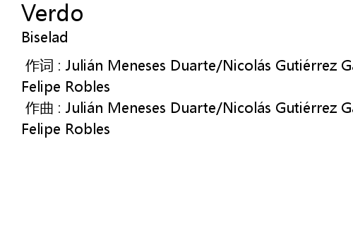 | [00:00.00-1] | 作曲 : Julián Meneses Duarte/Nicolás Gutiérrez García/Pablo Felipe Robles |