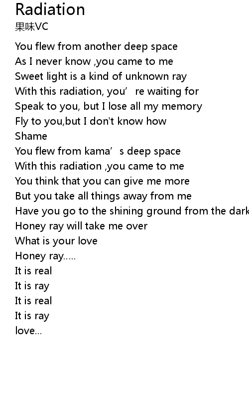 | [02:37.24] | With this radiation , you came to me |