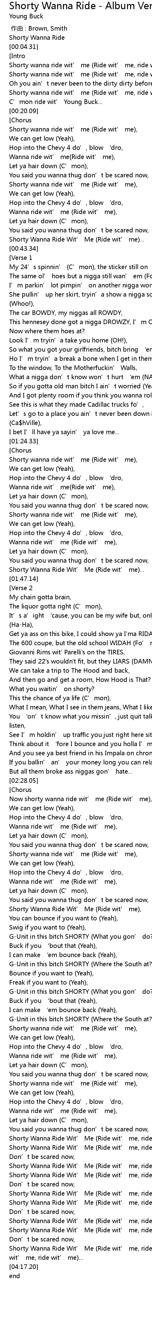 | [03:58.37] | Shorty Wanna Ride Wit' Me Ride wit' me, ride wit' me, |