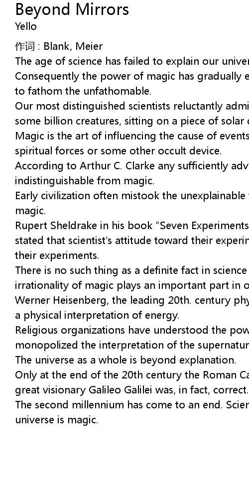 | The second millennium has come to an end. Scientists have to admit that the universe is magic. |