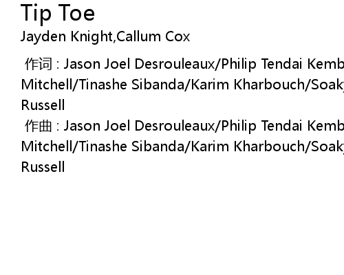 | [00:00.00-1] | 作曲 : Jason Joel Desrouleaux/Philip Tendai Kembo/John Lathrop Mitchell/Tinashe Sibanda/Karim Kharbouch/Soaky Siren/Johnny Mitchell/Rosina Russell |