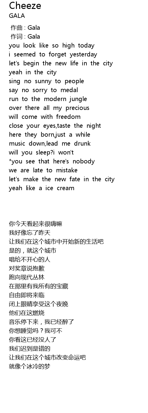 | [00:00.00] | 作曲 : Gala |