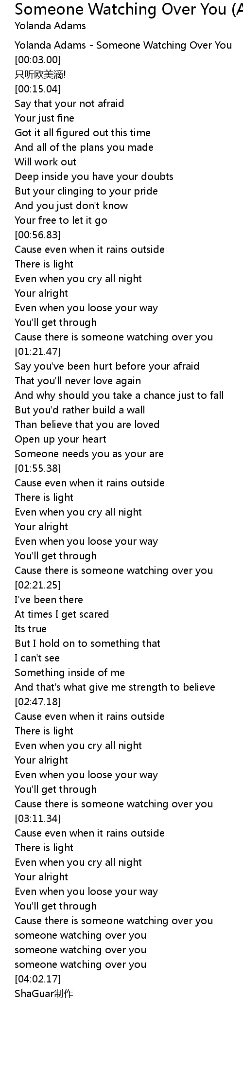 | [00:00.00] | Yolanda Adams - Someone Watching Over You |