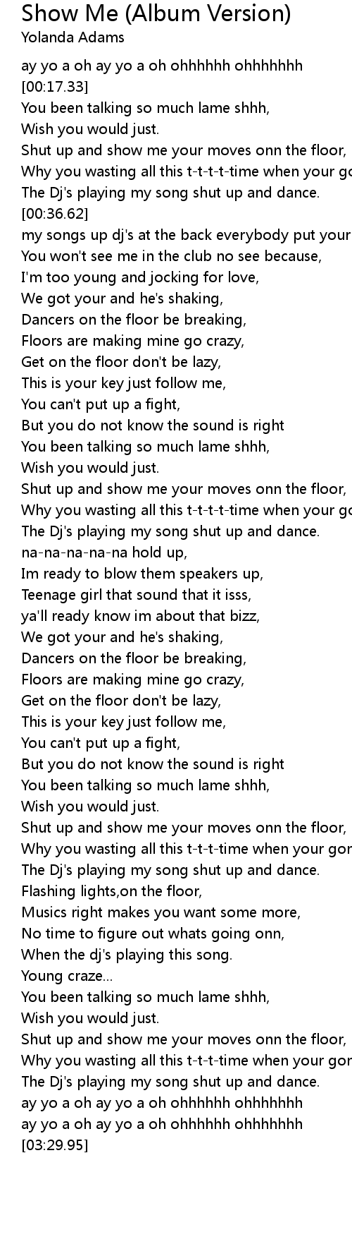 Shut up and show me your moves onn the floor, |