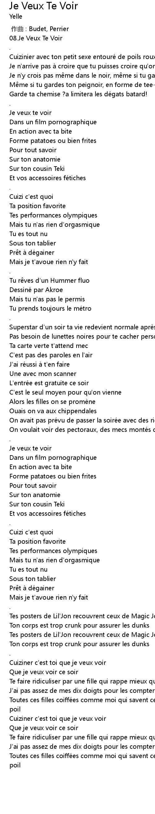 | [02:54.54] | Cuiziner c' est toi que je veux voir |