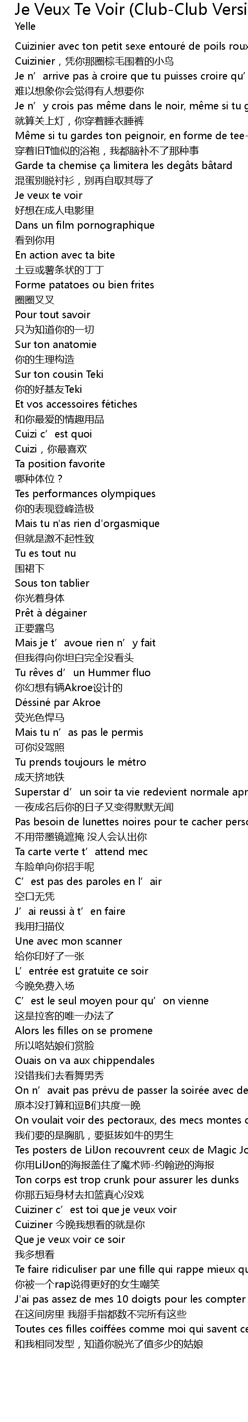| Song | Je Veux Te Voir (Club-Club Version) |