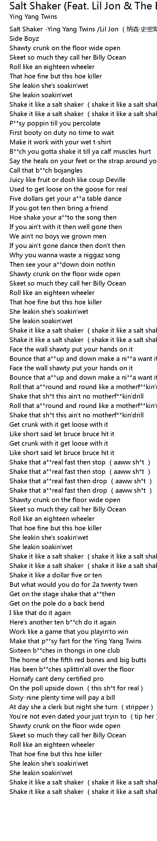 | [00:00.00] | Salt Shaker Ying Yang Twins Lil Jon na sen shi mi si The East Side Boyz |