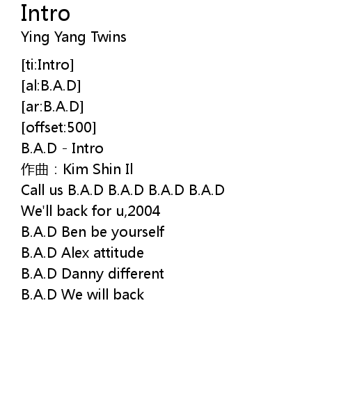 | [00:00.00] | B. A. D Intro |