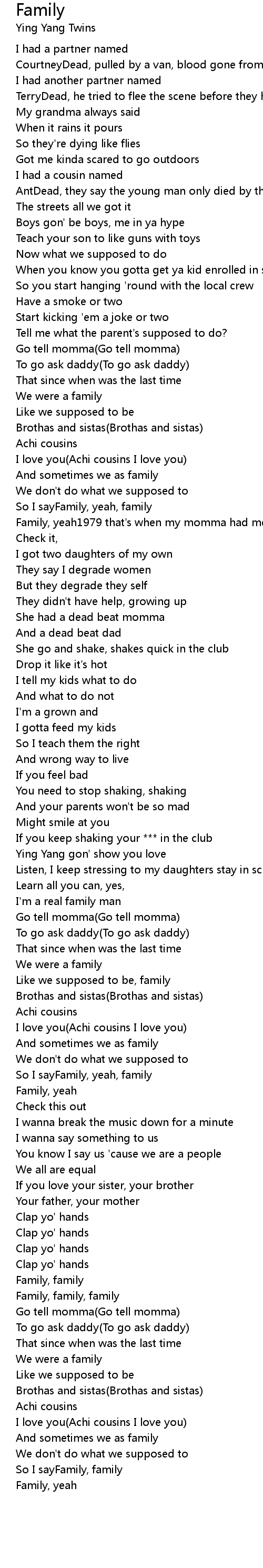 Family, yeah1979 that's when my momma had me2006, her oldest son is a daddy |