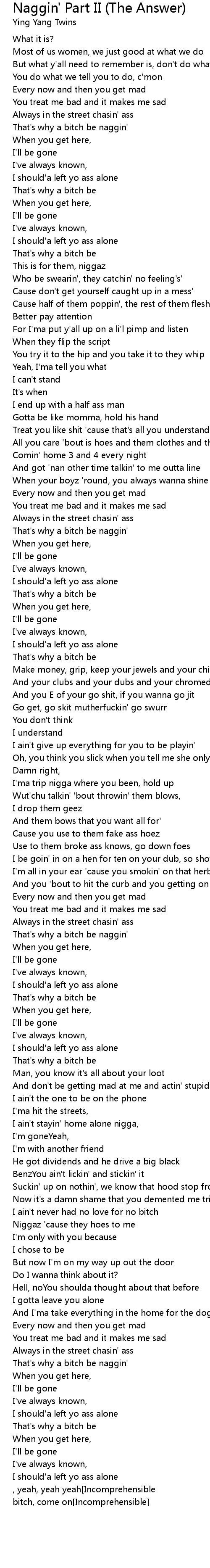 That's why a bitch be naggin' |