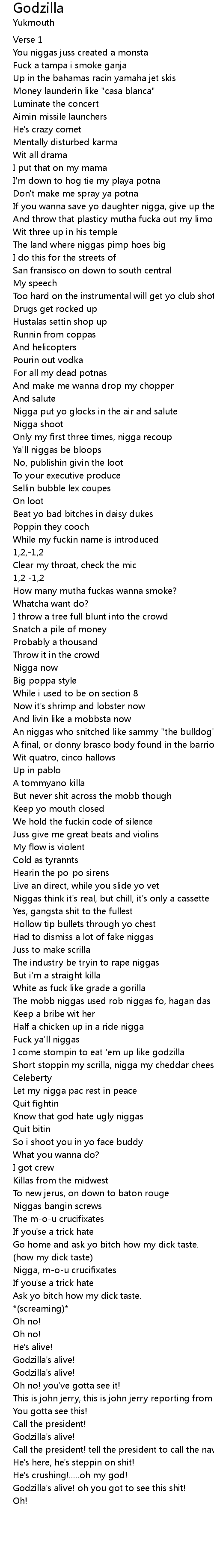 I come stompin to eat 'em up like godzilla |