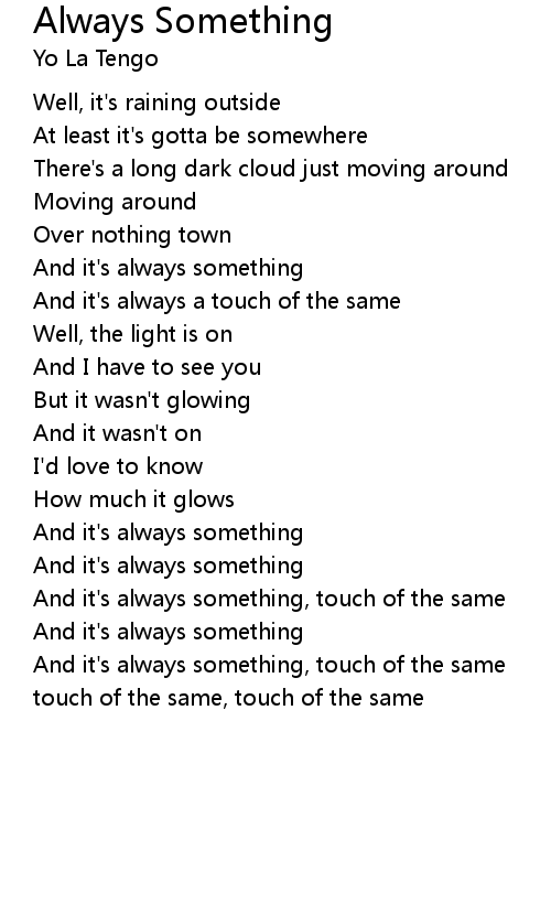 And it's always something, touch of the same |